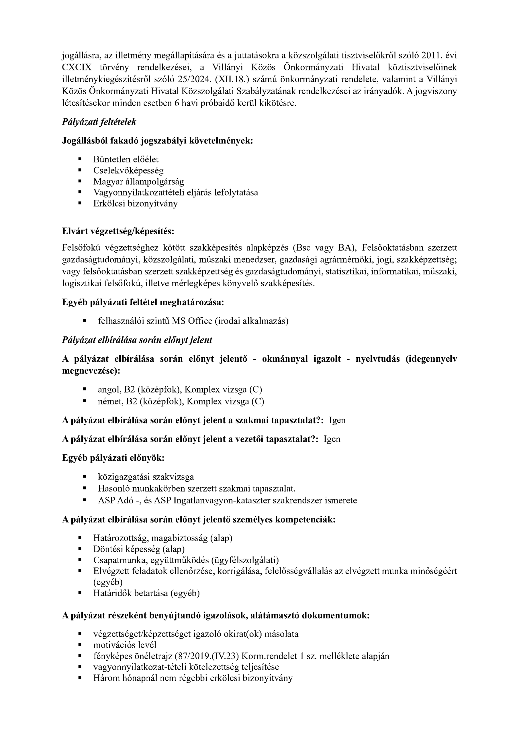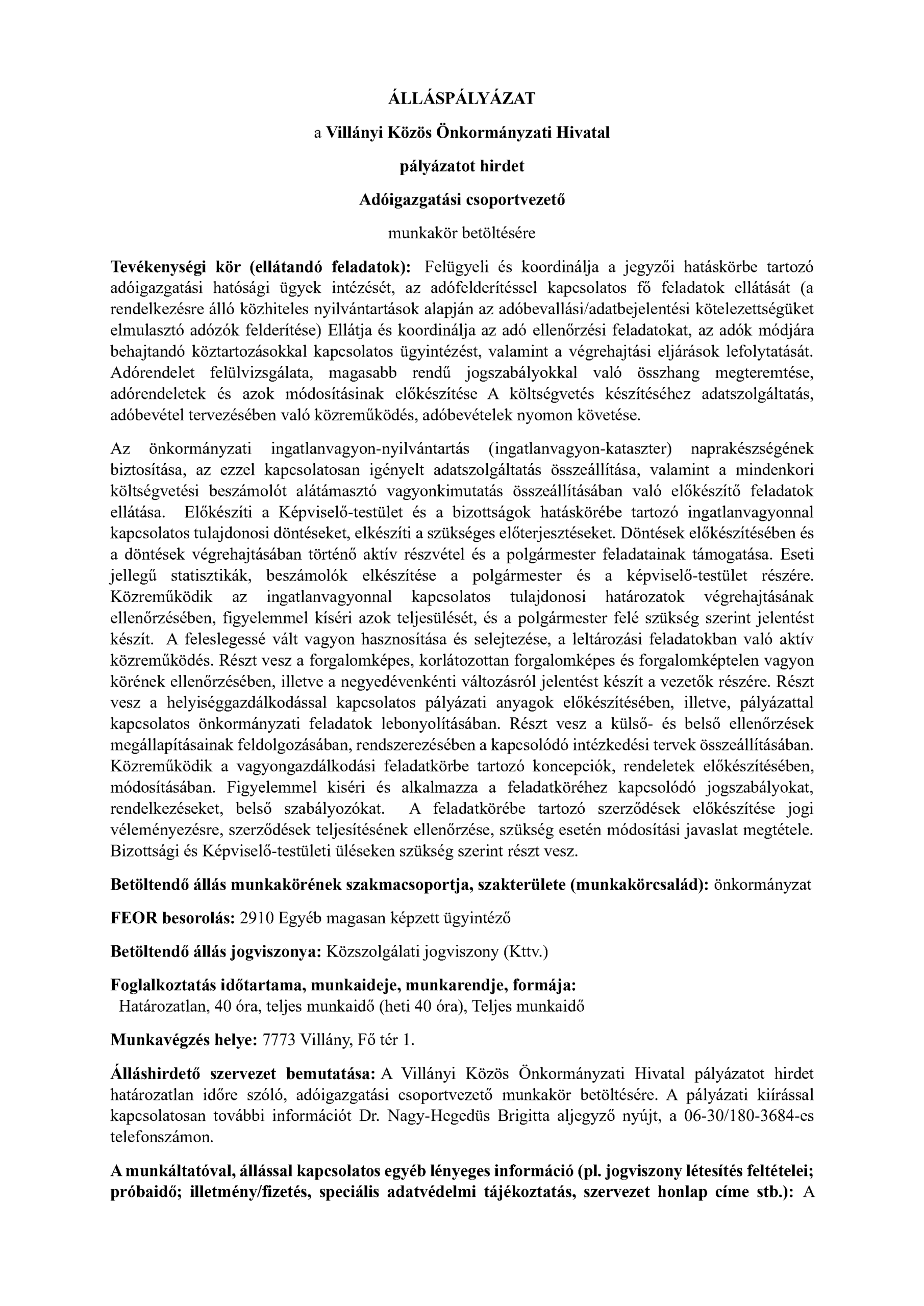 Pályázat adóigazgatási csoportvezető munkakör betöltésére